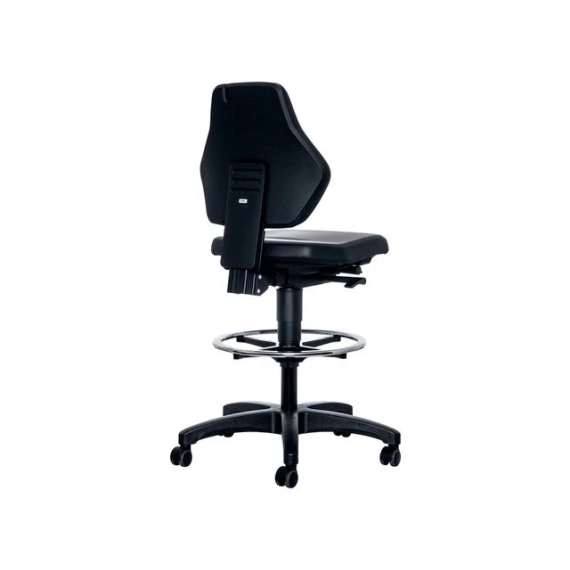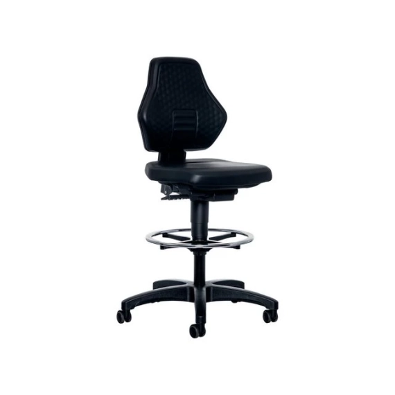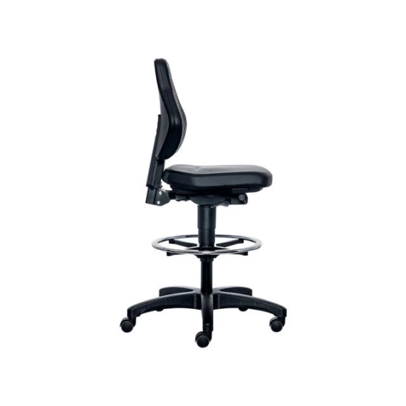 Ergonomisk laboratoriestol med fotring og stop & go-hjul BIMOS Labsit 9071 er en høykvalitets industristol designet for komfort og støtte i krevende arbeidsmiljøer. Den har justerbar ryggstøtte og sete, med fotring for ekstra støtte ved høyere sitteposisjoner. Stolen er utstyrt med en auto-synkroniserende mekanisme som gir automatisk vektjustering, noe som fremmer dynamisk sittestilling for bedre produktivitet. - Justerbar ryggstøtte: 70 mm høydejustering for optimal støtte - Ergonomisk sete: Forhindrer blodopphopning i lårene - Setehøyde: Trinnløs justering fra 600-890 mm - Synkronteknologi: Automatisk vektjustering og manuell finjustering - Stop & Go-hjul: Sikrer stabilitet når stolen er i bruk - Justerbar fotring: Forkrommet og lett justerbar for ekstra støtte - 10 års garanti, inkludert 3 års full garanti