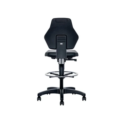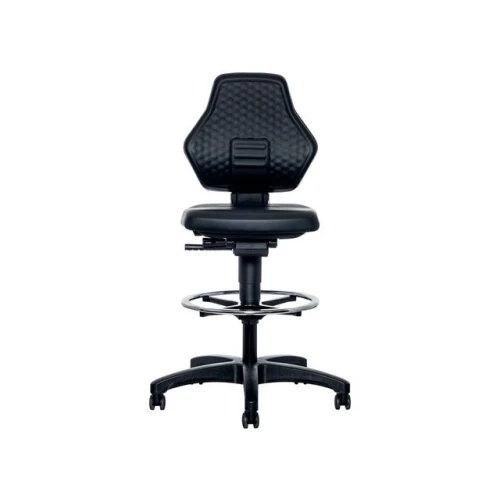 Ergonomisk laboratoriestol med fotring og stop & go-hjul BIMOS Labsit 9071 er en høykvalitets industristol designet for komfort og støtte i krevende arbeidsmiljøer. Den har justerbar ryggstøtte og sete, med fotring for ekstra støtte ved høyere sitteposisjoner. Stolen er utstyrt med en auto-synkroniserende mekanisme som gir automatisk vektjustering, noe som fremmer dynamisk sittestilling for bedre produktivitet. - Justerbar ryggstøtte: 70 mm høydejustering for optimal støtte - Ergonomisk sete: Forhindrer blodopphopning i lårene - Setehøyde: Trinnløs justering fra 600-890 mm - Synkronteknologi: Automatisk vektjustering og manuell finjustering - Stop & Go-hjul: Sikrer stabilitet når stolen er i bruk - Justerbar fotring: Forkrommet og lett justerbar for ekstra støtte - 10 års garanti, inkludert 3 års full garanti