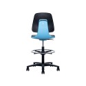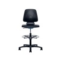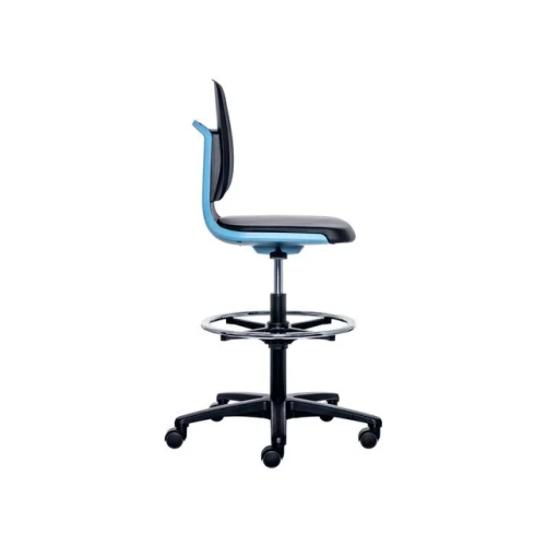 Ergonomisk laboratoriestol med høy sitteposisjon og fleksibel ryggstøtte Labsit 9125 er ideell for hygiene-kritiske miljøer som helsesektoren, bioteknologi og farmasøytisk industri. Med justerbar setehøyde fra 560 til 810 mm og en høydejusterbar fotring, gir stolen komfort og fleksibilitet. Stolen har sitte-stopp-hjul for økt sikkerhet og en fleksibel ryggstøtte som følger brukerens bevegelser. - Setehøyde: Justerbar mellom 560-810 mm - Ryggstøtte: 3D-Flex-funksjon som tilpasser seg brukerens bevegelser - Fotring: Høydejusterbar, forkrommet fotring for ekstra støtte - Materiale: Vaskbar, slitesterk kunstskinn som er motstandsdyktig mot desinfeksjonsmidler - Hjul: Myke hjul med brems for harde gulv - Sertifiseringer: DIN EN ISO 14644-1, GMP-konform - Garanti: 10 års garanti, inkludert 3 års full garanti