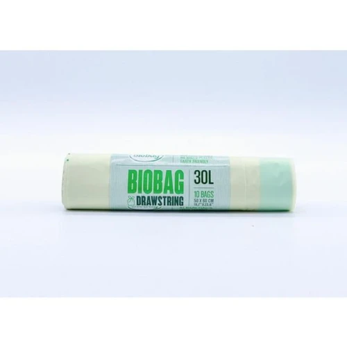 BioBag 30L er avfallsposer med snor som er fullstendig komposterbare og biologisk nedbrytbare. Fordeler: Poser med snor er enkle og hygeniske i bruk. Perfekt for mellomstore pedalbøtter eller innebygde avfallsenheter. Sterke snorer som ikke vil ryke når de trekkes i. Sertifiserte I henhold til den europeiske standarden EN 13432 og OK industrial compost. Egnet for mat og hageavfall. Pustende poser som ferbedrer hygiene og reduserer behovet for rengjøring av bøtter. - Størrelse: 500 x 600 mm - Tykkelse: 25my