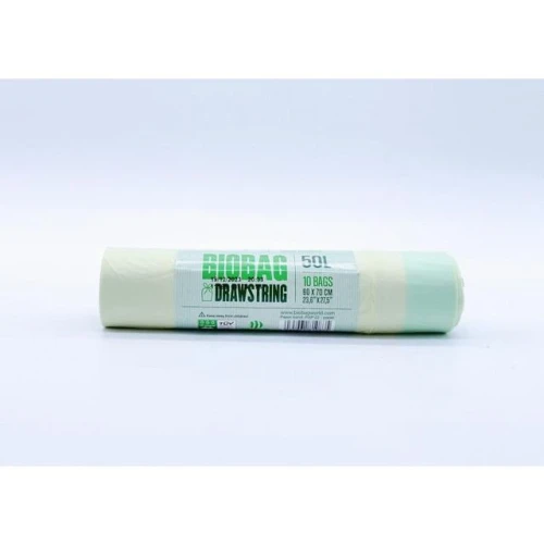 BioBag 50L er avfallsposer med snor som er fullstendig komposterbare og biologisk nedbrytbare. Fordeler: Poser med snor er enkle og hygeniske i bruk. Perfekt for mellomstore pedalbøtter eller innebygde avfallsenheter. Sterke snorer som ikke vil ryke når de trekkes i. Sertifiserte I henhold til den europeiske standarden EN 13432 og OK industrial compost. Egnet for mat og hageavfall. Pustende poser som ferbedrer hygiene og reduserer behovet for rengjøring av bøtter. - Størrelse: 600 x 700 mm - Tykkelse: 25my