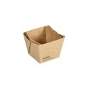 Take-awaybokser i kartong med plantebasert PLA-belegg. Boksene holder maten frisk og presentabel, og kan benyttes til både kalde og varme matretter. Viking matemballasje er et allsidig konsept for take away og catering. Emballasjen er laget av et fornybart materiale, og med ubleket finish får produktene et autentisk og rustikt uttrykk. Boksene er fett- og vannavvisende, og kan brukes med både kald og varm mat. Oppbevar matrettene i romtemperatur, kjøleskap eller varmeskap (70°C i inntil 2 timer). Emballasjen kan brukes i mikrobølgeovn, men sørg for ikke å bruke høyere effekt og lengre tid enn at produktet beholder sin styrke og stabilitet under bruk. Boksenes skrånende kanter sikrer god lekkasjebestandighet, og de kan kompletteres med tilhørende lokk i papp eller med PLA-vindu, selges separat.Praktiske take-awaybokser i kartong. Laget for å tåle matens varme og fuktighet, samtidig som maten holdes frisk og presentabel Materiale: Papp med PLA-belegg Varmebestandighet: Kald bruk, varmt innhold Kuldebestandighet: Kjøleskap Antall rom: 1 Farge: Brun Mål (LxBxH): 75x75x60mm Volum: 250ml Lokk selges separat