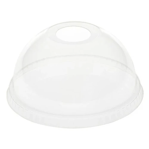 Høye, kuppellokk til Crystal plastglass. Lokket har hull til sugerør. Crystalserien er velegnet til smoothies, juice, snacks etc. - Bruksområde: Kaldt innhold, oppbevaring i kjøleskap. Diameter lokk: 102mm, passer til beger med diameter 98mm. - Høyde 55mm. - Farge: Transparent. - Materiale: rPet. - Innhold: Forpakning med 50 lokk.