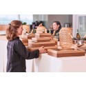 Lokk med vindu til DUNI Glance cateringbrett. Det gjennomsiktige lokket beskytter maten og lar dessuten kundene få et glimt av det delikate innholdet. Egnet for kald bruk, kjøleskap. - Materiale: Kartong med PLA-vindu - Mål (LxBxH): 364x255x30mm