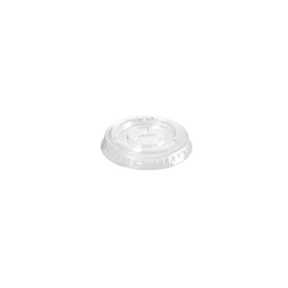 Lokk til dressingbeger 30ml. Fremstilt av 100 % resirkulert PET (RPET) fra forbrukeravfall. Diameter: 49mm, høyde 6mm