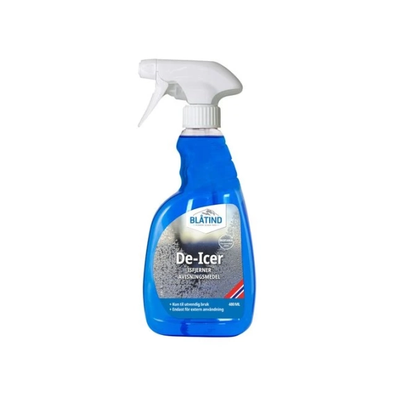 Blåtind De-Icer er en effektiv avisingsvæske til utvendig bruk på ruter, lykter og speil for kjøretøy. Utviklet for nordiske forhold og minimerer bruk av isskrape, samt at den virker raskt. Dette produktet inneholder en sammensetning av alkoholer og ingredienser som myker opp og smelter isen. Bruk: Spray på og la det virke litt til isen har smeltet. Fjern eventuelle rester ved bruk av isskrape/vindusviskere. - Klar til bruk-formel - Kun til utvendig bruk - Inneholder Bioetanol - Produktet skader ikke lykter (Polykarbonat, Poly(metylmetakrylat). - Fare- og sikkerhetsinformasjon: - H226 Brannfarlig væske og damp