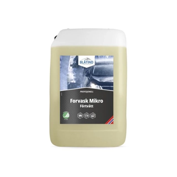 Blåtind Profesjonell Forvask Mikro er en mikroemulsjon som inneholder en effektiv sammensetning av tensider, emulgatorer og løsemidler. Produktet er egnet som forvask til kjøretøy for nordiske forhold vinterstid. Den er velegnet til alle type kjøretøy som for eksempel personbil, buss, lastebil o.l. Og den er utviklet for å effektivt fjerne salt, sot, veistøv, trafikkfilm og asfaltflekker. - Til bruk i automatvaskeanlegg - Inneholder lett nedbrytbare virkestoffer - pH-verdi: 13-14 - Farge: Gulaktig - Fare- og sikkerhetsinformasjon: - H314 Gir alvorlige etseskader på hud og øyne