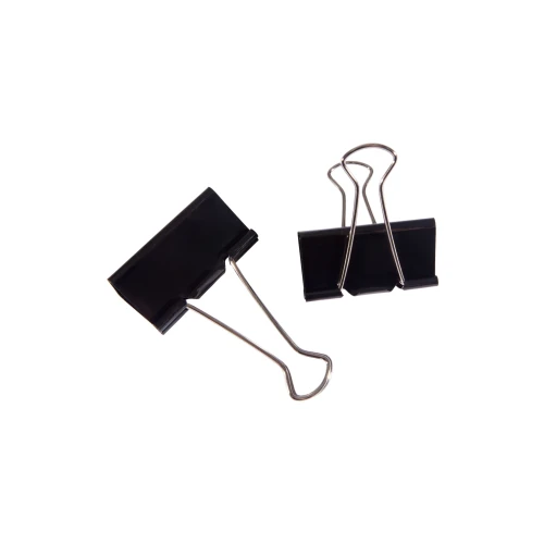 Papirklemme av bøyd metall. Håndtakene kan brettes forover ved klemming og bakover for å henge opp. Gap 25mm