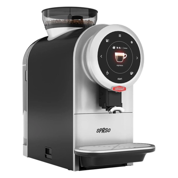 Sprso Espressomaskiner liten, kraftig og elegant. Denne elegante 'bean-to-cup'-maskinen brygger perfekte kopper med ristretto, espresso, café crème og americano. Hvis du er på jakt etter en espressomaskin som er like enkel og intuitiv som en maskin for hjemmebruk, men med profesjonelle funksjoner, er Sprso et riktig valg. - Med tilbehøret melkekjøler1 kan du også tilberede en god kopp cappuccino eller caffè latte - Sprso passer perfekt til møterom, venterom og små kontorer - Siden Sprso er så kompakt, passer den også på kjøkkenbenken hjemme