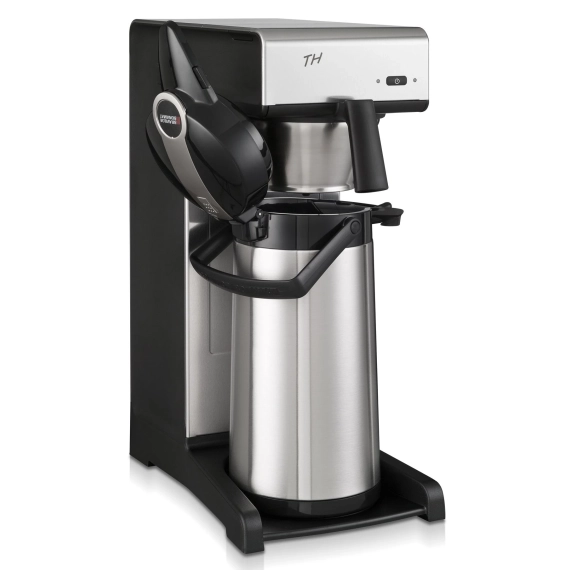 TH har manuell vannpåfylling via et lokk i front på trakterenTrakter kaffe direkte i pumpetermos eller termokanne (følger ikke med)Maskinen varsler når kaffen er klar og når det er behov for rensingKapasitet per time: 19 literTraktetid: 7 minutterMål (B x D x H): 235 x 406 x 545 mm
