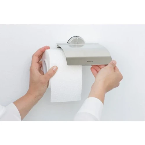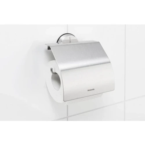 Toalettpapirholder Brabantia i børstet stål. Tidløst design og holdbar kvalitet. Holderen er laget av korrosjonshindrende, rustfrie materialer, som passer perfekt til toalettet eller baderommet. - Med klaff som skjuler og beskytter papirrullen - Mål (HxBxD): 12,3x13,3x1,7cm