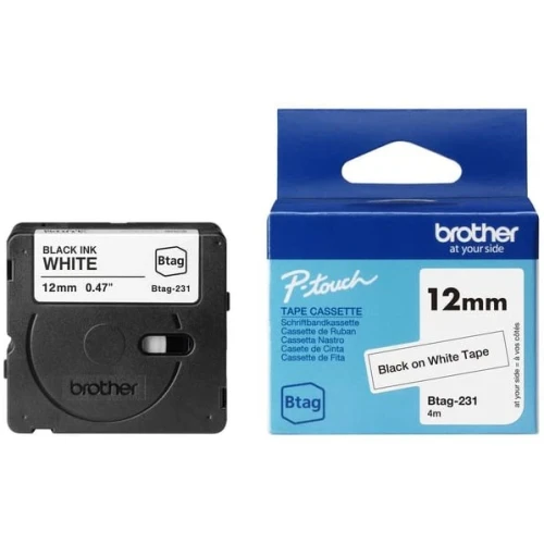 Brother original BTAG231 sort på hvit12mm ulaminert merketape er perfekt for allsidig organisering i hjemmet. Lag merkelapper for å organisere gjenstander på kjøkkenet, hjemmekontoret og personlige gjenstander, samt for å merke oppbevaringsbokser, barnas skolebøker og skrivesaker. Btag tape er holdbar og motstandsdyktig mot mange av forholdene under daglig bruk i hjemmet. Merkelappene tåler mikrobølgeovn, fryser, oppvaskmaskin, husholdningsvæsker og vann, noe som betyr at de vil forbli intakt og leselig over tid. - Merketape for allsidig bruk - Perfekt for merking og organisering - Holdbar og motstandsdyktig - Farge: Sort på hvit - Bredde: 12mm - Lengde: 4m - Kompatibel med: Btag PTN-serien