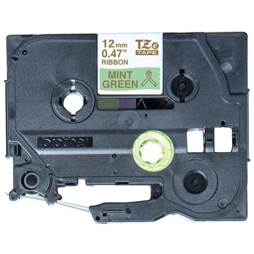 Silkebånd BROTHER TZERM34 i gull på mintgrønt i 12 mm bredde som gir deg et raskt og pålitelig resultat, samt en tydelig og profesjonell utskriftsstandard.