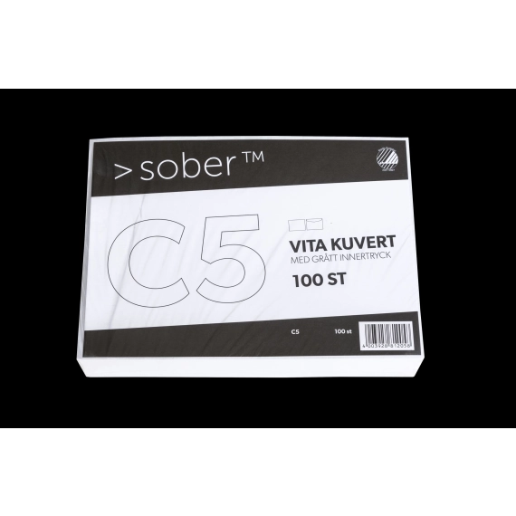 Hvit standard konvolutt med grått indre trykk, peal og seal. C5. 162x229mm. Leveres i pakker på 100. Miljømerket med Nordic Swan.