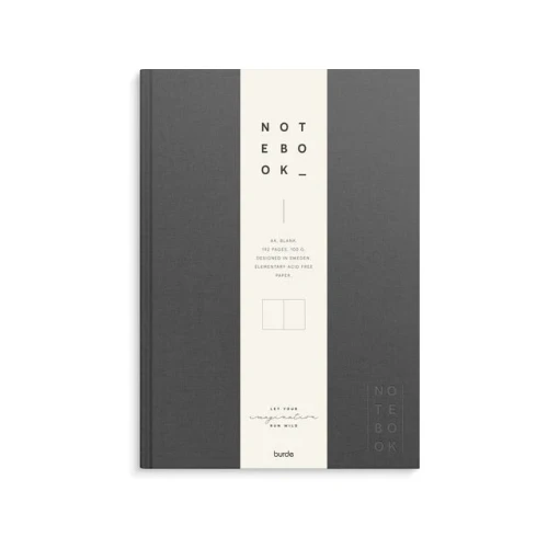Burde Skrivebok A4 ulinjert mørk grå
