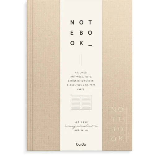 - Innbundet - Omslag i tekstil i linkvalitet - Kremfarget linjert 100 g papir - 120 blad - FSC® - Format: A5