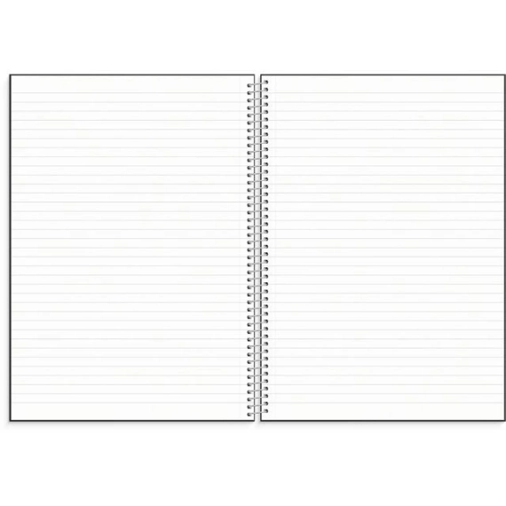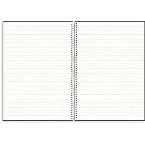 Skrivebok med omslag i trykket kartong. - Linjert - Vekt: 80 g papir - Antall ark: 80 - Format: A4 - Farge: sort - Sølv spiral