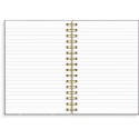 Skrivebok linjert med omslag i trykket kartong. Spiralisert skrivebok i matt burgunder kartongomslag og gull spiral. En god følgesvenn for dine notater. Boken har hele 300 linjerte sider, så her har du masse skriveplass. Det praktiske A5 formatet gjør at boken er liten nok til å ta med seg, og gir samtidig masse plass til dine notater. Formatet gjør den lett å ta med seg og passer til alle ulike formål- enten det er på jobb eller privat - Skrivebok med omslag i kartong - Linjert 70 g papir - 150 blad - Gull spiral - Format: A5