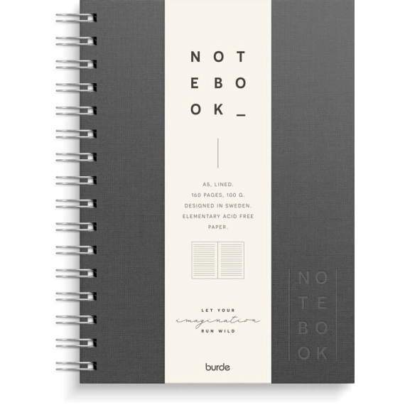 - Spiralisert - Omslag i tekstil i linkvalitet - Kremfarget linjert 100 g papir - 80 blad - Trykket på FSC®papir - Format: A5