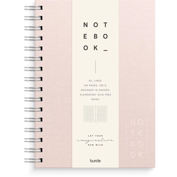 - Spiralisert - Omslag i tekstil i linkvalitet - Kremfarget linjert 100 g papir - 80 blad - FSC® - Format: A5