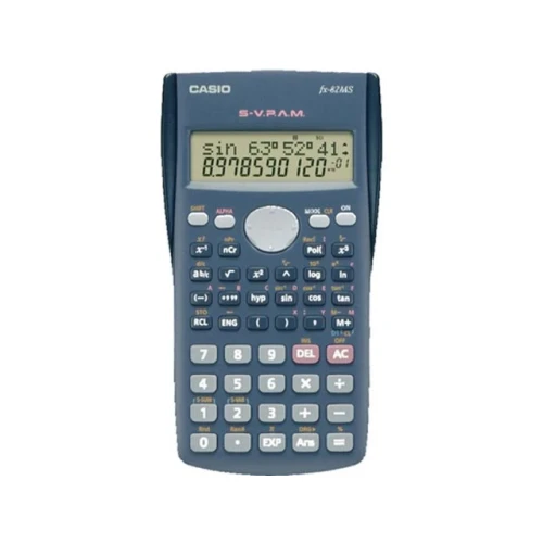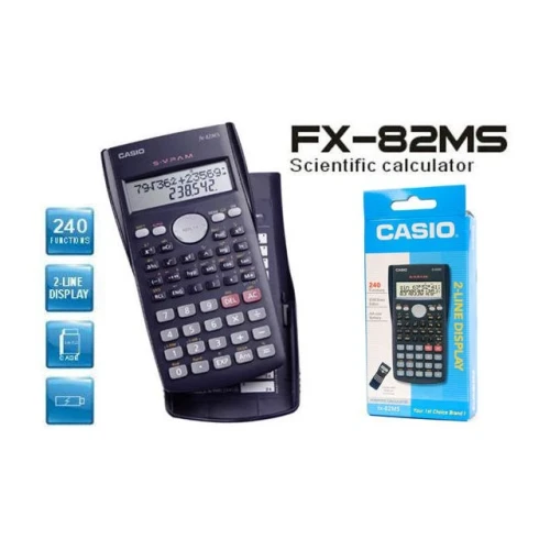 Teknisk kalkulator, Casio® FX-82MS sort kalkulator med 2-linjers display. Enkel teknisk lommekalkulator til bruk på videregående. Teknisk kalkulator med 240 funksjoner. Bl.a. statistikk med middelverdi og standardavvik. - Poler til rektangulær omregning m.m. - Bruker 1 stk. AAA-batteri. - Mål (HxBxD): 15,9x8,5x2,3 cm