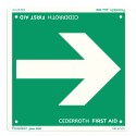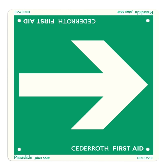 Green-yellow photoluminescent double sided sign for signaling where escape routes can be found. The photoluminescent afterglow remains up to 15 h after having been fully charged by light. The sign has holes in each rounded corner for screwing onto the wall. REF 1750 includes an adhesive sign clip, which can be used for mounting of the sign pointing out from a wall or hanging down from the ceiling. Size: 20cm x 20cmREF 1750 comes with an adhesive sign clip, which can be used for mounting of the sign pointing out from a wall or hanging down from the ceiling. Size: 20cm x 20cm