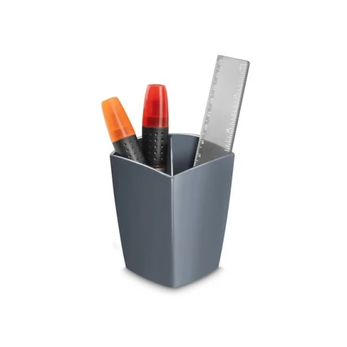Moderne design med 2 rom gjør det mulig å holde tingene adskilt, samtidig som de er godt plassert vertikalt. - Kapasitet: 32 penner - 100 % resirkulerbar, støtbestandig polystyren - Dim: 74 x 74 H 95mm -