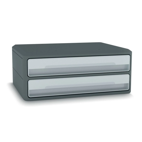 MoovUp, den smidige modulen som passer til nye arbeidsmetoder.2 store skuffer for oppbevaring av kontorrekvisita (penner, kalkulator, A5-notatblokk...), datatilbehør (ekstern harddisk, USB-nøkkel, mus...), dokumenter opp til 24x32 cm, nettbrett og bærbar PC opp til 14''.Oppbevaringskapasitet per skuff. 328 x 245 H 40 mm: 328 x 245 H 40 mm.Mulighet for merking av skuffene med vannbasert tusj.Jevn glidning med støttestoppere.Svært robust og kan brukes som skjermforhøyer (opptil 5 kg) for å fremme gode arbeidsstillinger. Åpning på baksiden av modulen for montering av en tyverisikringskabel. 4 integrerte hakk gjør det mulig å stable modulene stabilt ved behov. Laget av 100 % resirkulert materiale.100 % resirkulerbar plast PS av høy kvalitet.På grunn av resirkulert materiale kan fargen variere noe fra produksjon til produksjon.Dim. 368,5 x 274,5 H 146 mm.