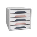 Hold orden på skrivebordet ditt med denne ultra-robuste CEP- skuffekabinett med 5 skuffer for oppbevaring av kontorrekvisita og dokumenter opp til 24x32cm. Strukturert overflate, moderne og raffinert skuffekabinett med ergometrisk håndtak og hull i bunnen for enkel tilgang til innholdet. - Farge: assortert - Mål (HxBxD): 27,1x36x28,8cm - Oppbevaringskapasitet per skuff (HxBxD): 4x32,8x24,4cm - Mulig å stable modulene stabilt ved behov - Glidende skuffer med sikker stopp - Leveres med sklisikre føtter - 100% resirkulerbar.