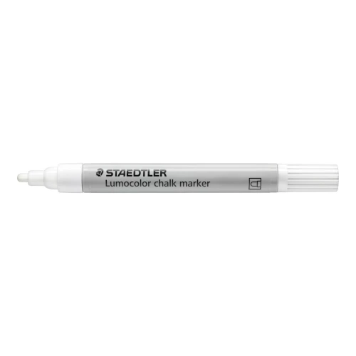 Lumocolor® chalk marker for opaque writing, decorating and designing on smooth surfaces such as (dark) boards, glass, windows, mirrors etc. Low-odour, water-based liquid chalk. Can be easily wiped off nearly all smooth surfaces using a damp cloth. High colour brilliancy. Line width approx. 2.4 mm.