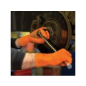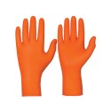 Engangs-kjemikaliehansker i nitril, pudderfri. Mikrotekstur for best mulig grep. Tåler fett, rensemidler etc. Godkjent for bruk i direkte kontakt med alle typer mat, inkludert fettholdig mat. Godkjent til medisinsk bruk. Testet i henhold til ASTM D6978-05 - Resistens for medisinske hansker mot gjennomtrengning av kjemoterapimedikamenter. Passer til: Laboratorier, kjemisk industri, bilindustrien, mekanisk industri, lett monteringsarbeid, næringsmiddelindustri. - STANDARDER OG MERKING: EN 420:2003 + A1:2009, EN 1186, EN 455, EN 374:2016, CE Cat.III - Vekt: 7,2 ± 0,5 g - Kjemikaliebeskyttelse - Vanntett - Pudderfri - Synlighet - Ekstra lang - Lengde: 27 cm - Tykkelse: min 0,11 mm (håndflate) - Oransje
