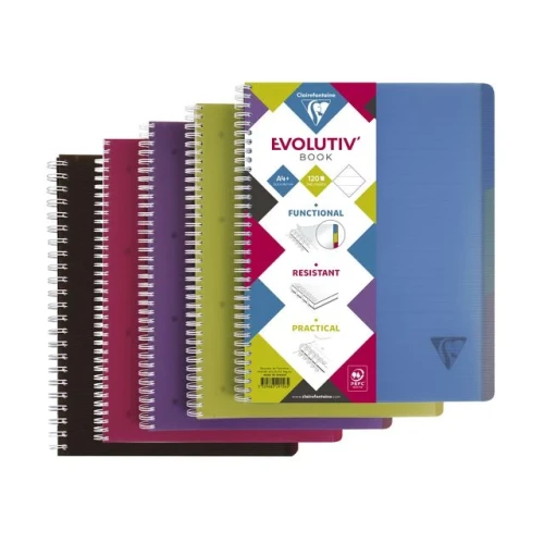 Clairefontaine Linicolor INTENSIVE spiralblokk A4+, 22,5x29,7 cm, 90 ark linjert med marg. 5 DYPT &: INTENSE farger for å bringe RO OG SERENITET til hverdagen. 3 flyttbare polypro-deler for å organisere notatene dine i 3 distinkte og justerbare deler. Mikroperforerte avtakbare ark og hull for enkel fjerning og arkivering. Gjennomsiktig omslag i solid polypropylen for høy motstand mot håndtering, med en original rillet tekstur. Forskjellige farger, levert tilfeldig. Motstandsdyktig dobbelspiralbinding som gir full åpning (360°) av blokken, ideell for å skrive på begge sider av arkene. Clairefontaine børstet pergamentpapir på 90 g/m² for en silkemyk skriveopplevelse. Med en perfekt satengfinish for maksimal glatthet, en unik hvithet, overlegen opasitet og styrke, passer Clairefontaine-papiret for alle typer penner. Syrefritt og pH-nøytralt permanent papir, i samsvar med ISO 9706 som garanterer nesten uendret bevaring av egenskapene i over hundre år. PEFC-sertifisert for bærekraftig skogforvaltning. Laget i Frankrike.