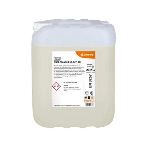 Spesialdesignet tøyvaskemiddel til vask av mikrofiber. Et middel for skånsom og effektiv vask. Benyttes sammen med automatisk doseringsanlegg fra Lilleborg. - Flytende tøyvaskemiddel. - Lavalkalisk - Mål (LxBxH): 28,8x25,1x38 cm - Volum: 20 L - Fare- og sikkerhetsinformasjon: - H290 Kan være etsende for metaller