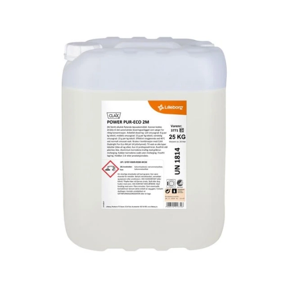 Tøyvaskemiddel uten blekemiddel, zeolitt og optisk hvitt. Flytende og sterkt alkalisk middel til vask av alle typer tekstiler (ikke ull og silke). Benyttes sammen med automatisk doseringsanlegg fra Lilleborg. - pH-verdi: 14 (ufortynnet)/ 11,5 (2 g/l) - Mål (LxBxH): 28,8x25,1x38 cm - Volum: 20 L - Fare- og sikkerhetsinformasjon: - H314: Gir alvorlige etseskader på hud og øyne. - H290: Kan være etsende for metaller.