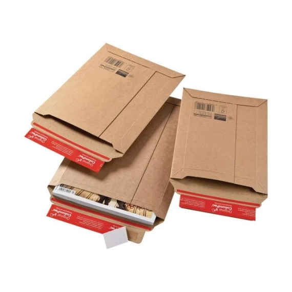 Pappkonvolut, ColomPac® CP 010. 25x36x5 cm. Kan justeres i høyden. Ekstra kantbeskyttelse, slik at konvolutten ikke kan bøyes. - Justerbar i høyden - Med Peal & Seal-lukking og åpningsstrimmel. - Pappkonvolutt i sterk bølgepapp. - Mål: 25x36x5cm. - Vekt: 76g. - Farge: brun.