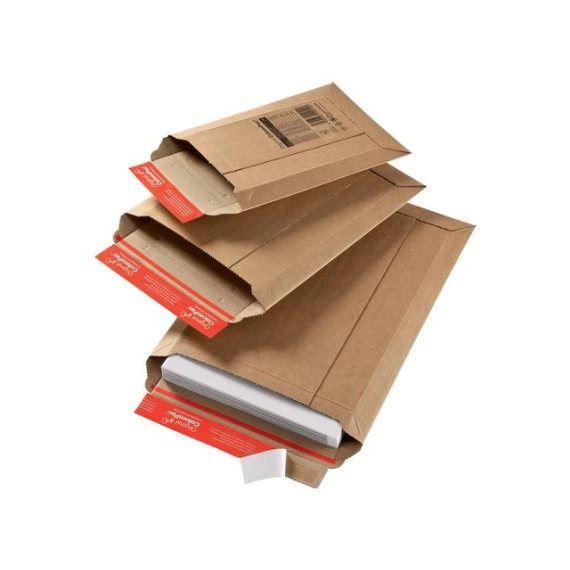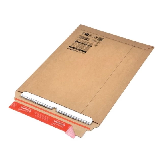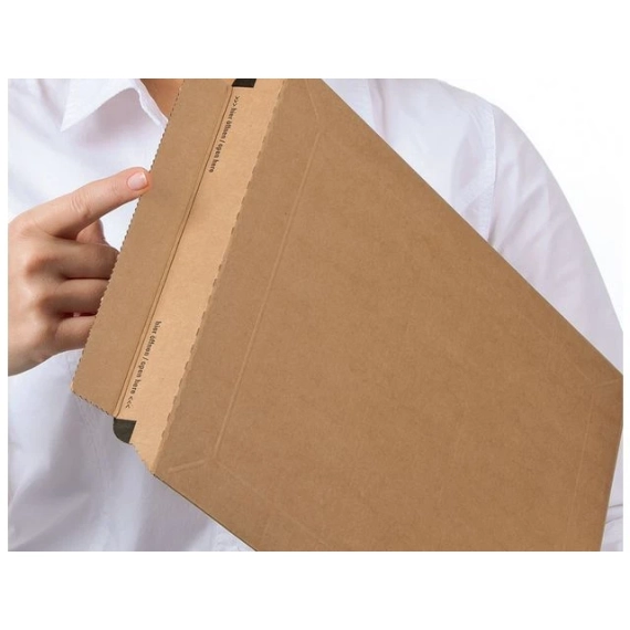 Solid pappkonvolutt med ekstra kantbeskyttelse, slik at konvolutten ikke kan bøyes.