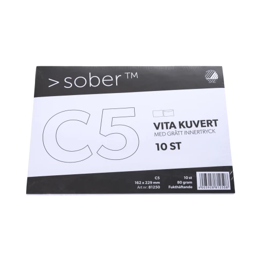 White standard gummed envelopes C5 (162x229mm) with grey inside.