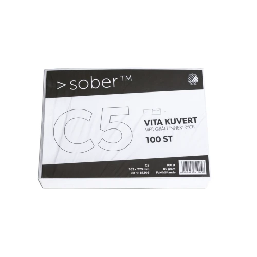 White standard gummed envelopes C5 (162x229mm) with grey inside.