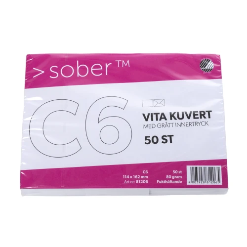 White standard gummed envelopes C6 (114x162mm) with grey inside.