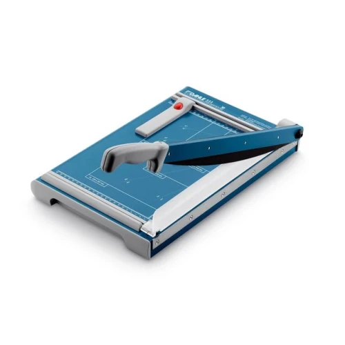Praktisk giljotin for kuttepresisjon. Kompakt giljotin på inngangsnivå for hobbybruk. Over- og underkniv i stål av høy kvalitet. Skjæremaskin med to målestokker med mm-skala for nøyaktig 90° kutt. Justerbar tilbakestopper for raskt å finne det riktige formatet. - Over- og underkniv i Solingen stål - Ergonomisk formet håndtak. - Integrert fingerbeskyttelse - Skjærelengde: 340 mm - Skjærekapasitet: 15 mm - Bordflate: 443 x 285 mm - Vekt: 4,7 kg