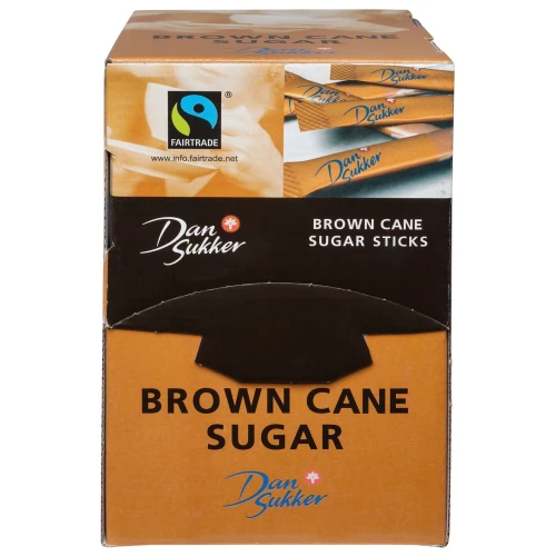 Ferdige porsjonerte sukker sticks med brunt sukker, som er klare til bruk. Bare riv av enden, og hell sukkeret f.eks. i kaffekoppen.