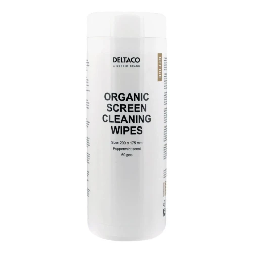 DELTACO økologiske servietter for skjerm. 200x175 mm. - Inneholder 60 servietter - Størrelse: 200x175 mm - Duft: peppermynte - Farge: hvit