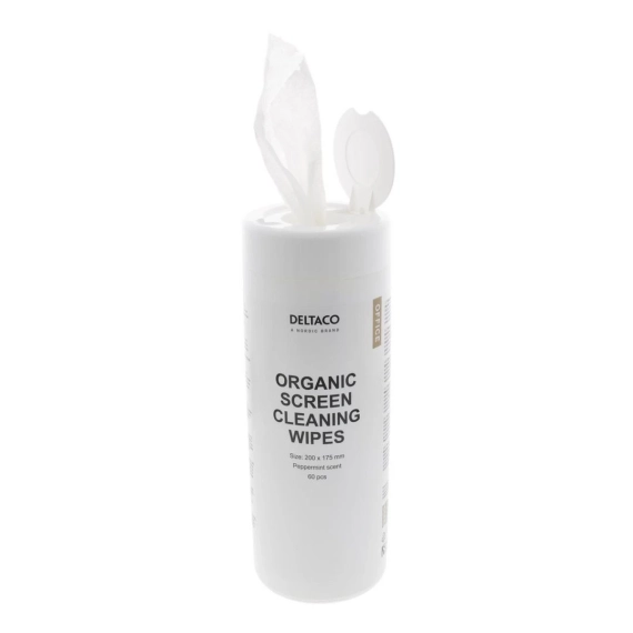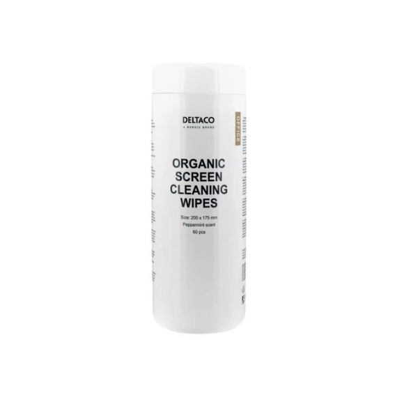 DELTACO økologiske servietter for skjerm. 200x175 mm. - Inneholder 60 servietter - Størrelse: 200x175 mm - Duft: peppermynte - Farge: hvit