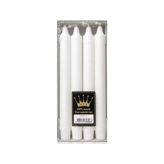 Hvite kronelys fra Diana Brennetid: 9 timer - Lys laget av 100% stearin og naturlig voks - Lengde: 24 cm - Pakke med 8 stk.