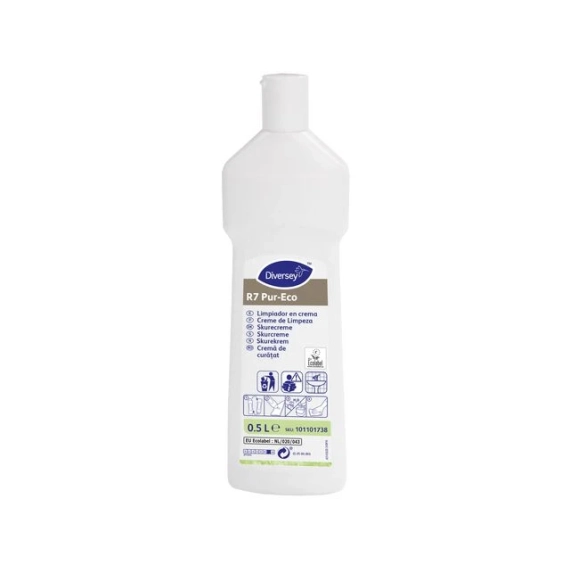 Rengjør trygt og effektivt med R7 Pur-Eco. En allsidig skurekrem som tar vare på overflatene dine. Den fjerner smuss og flekker uten å ripe, og er ideell til alt fra stålbenker til badekar. En drøy og pålitelig rengjøringsløsning for hjem og profesjonelle miljøer. - Skånsom skurekrem for effektiv rengjøring - Egnet for stål, porselen og andre harde flater - Riper ikke overflaten - Passer både til kjøkken og bad - pH-verdi: 10 - Fare- og sikkerhetsinformasjon: - EUH 208 Inneholder 2-metyl-3-isotiazolon (Metylisothiazolinone). - Kan gi en allergisk reaksjon. - EUH 210 Sikkerhetsdatablad er tilgjengelig på anmodning.