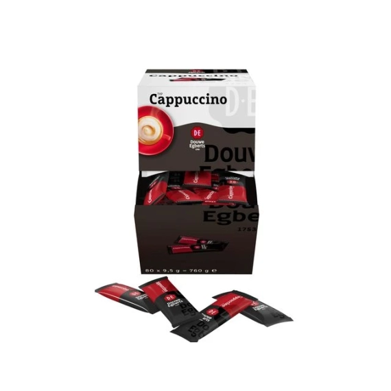 Porsjonsposer med fyldig og aromatisk cappuccino kaffe. Hver enkelt pose inneholder en kombinasjon av kaffe, melk og sukker, noe som gir deg den perfekte skumtoppen hver gang du vil nyte en cappuccino. Porsjonspakkene med Douwe Egberts Cappuccino er små nok til å ta med seg, og passer dermed perfekt for kaffepauser når du er på farten. - Du trenger bare å tilsette varmt vann for å få en fyldig og kremet kaffe - Sterk og aromatisk smak som kvikker deg opp på morgenkvisten. - Inneholder: 80 porsjonsposer.