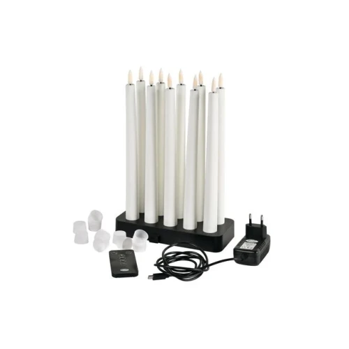 Oppladbare hvite, koniske lys er et flott og praktisk alternativ til tradisjonelle lys. Antikklysene til et utmerket valg for å skape en koselig, trygg og innbydende stemning i ethvert rom. Ledlys har ikke åpen flamme, og utgjør dermed ingen brannrisiko. Dette gjør dem trygge å bruke i serveringssteder, institusjoner og kontormiljøer. Lysene produserer ikke røyk eller sot, noe som gjør dem bedre for innemiljøet og luftkvaliteten sett mot vanlige lys. Antikklysene gir en autentisk og varm atmosfære med en flakkende effekt som etterligner bevegelsen av en ekte flamme. Med den inkluderte fjernkontrollen kan lysene dimmes, og timer-funksjonen gir mulighet for innstilling for 4 eller 6 timer. Ladestasjonen kobles til vandlig strømuttak, og fullader lysene på 6 timer.Oppladbare ledlys med :flamme:, skaper stemning på en trygg måte. Settet inneholder 10 hvite antikklys, ladestasjon med strømadapter, og fjernkontroll Mål lys (diameter x høyde): 23x278mm Ladetid: 6 timer, gir inntil 26 timer lys Kostnads-og energieffektiv løsning