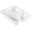 Forseglbare Duniform menyformer med tre rom. Formene kan forsegles med film i Duniform forseglingsmaskin. Hvis du ønsker å forlenge holdbarheten, er formene også velegnet til emballering i modifisert atmosfære (MAP). Formene er produsert i hvit polypropylen, tåler temperaturer fra -20°C til +120°C. - Materiale: PP - Mål: 227x178x50mm - Volum: 530/325/235ml - Farge: Hvit - Varmebestandighet: Kald bruk, varmt innhold, mikrobølgeovn - Kuldebestandighet: Kjøleskap, fryser
