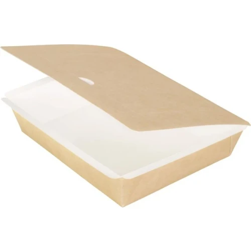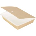 Form til servering og presentasjon av matretter. 1 rom. Det hengslede lokket gjør det mulig å forsegle formene i en Duniform®-maskin uten en separat forseglingsfilm. Når formen er forseglet, fjerner du den midterste delen av kartonglokket for å vise maten gjennom et krystallklart vindu. Materiale: FSC-sertifisert kartong med PE-belegg. Varmebestandighet: Kald bruk, Varmt innhold, Mikrobølgeovn. Kuldebestandighet: Kjøleskap. Mål: 195x165x45 mm. Farge: Brun.