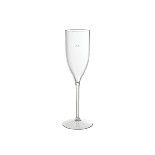Gjenbrukbare champagneglass i tritan, slitesterke og lette. Tritan er en type copolyester, kjent for sin klarhet og holdbarhet. Materialet er BPA-fritt og motstandsdyktig mot brudd og knusing. Dette gjør dem til et trygt og solid alternativ til tradisjonelle glass. Ideelle for festlige anledninger, større arrangementer, utendørs piknik, kafeer og kantiner. De høye champagneglassene glassene rommer 13cl og har en målestrek som indikerer 10cl. De er beregnet for kald bruk, og kan oppbevares i kjøleskap eller fryser. En serie holdbare og lette glass, noe som gjør dem enkle å håndtere i forbindelse med borddekking, servering, rydding og oppvask. Tåler oppvaskmaskin – opptil 350 sykluser. For lengst mulig levetid anbefales det å vaske de transparente glassene på øverste hylle i oppvaskmaskinen. Glasset er ikke egnet for bruk i mikrobølgeovn. ReDine Elegance-serien utstråler raffinement og hever feiringen din. - Lette og slitesterke champagneglass for flergangsbruk - Materiale: Tritan - Mål (Diameter x høyde): 55x217mm - Farge: Transparent